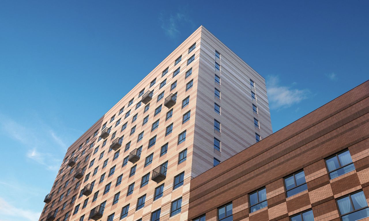 Монолитные дома с отделкой фасадов из вентилируемых панелей различных цветов. Как всегда, присутствуют и яркие оттенки, в данном случае, оранжевый. Здания комплекса расположены так, что образуют уютный и безопасный внутренний двор без машин. Будет проведено озеленение территории по специальному проекту. Помимо трёх корпусов, будет построен детский сад, школа и физкультурно-оздоровительный комплекс.